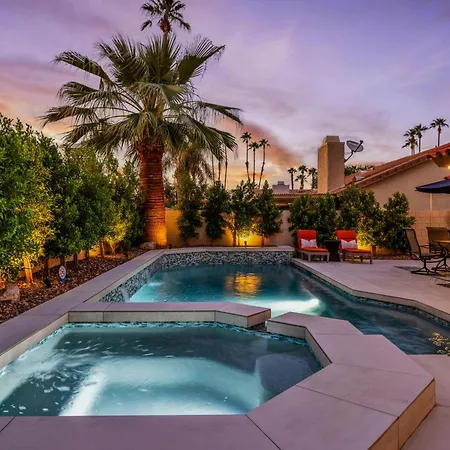 Willa Azure Oasis-Saltwater Pool & Spa With Putting Green! Palm Desert leży w pobliżu drzew palmowych i obejmuje prywatny basen kąpielowy, jacuzzi, aby zwiększyć relaks gości.